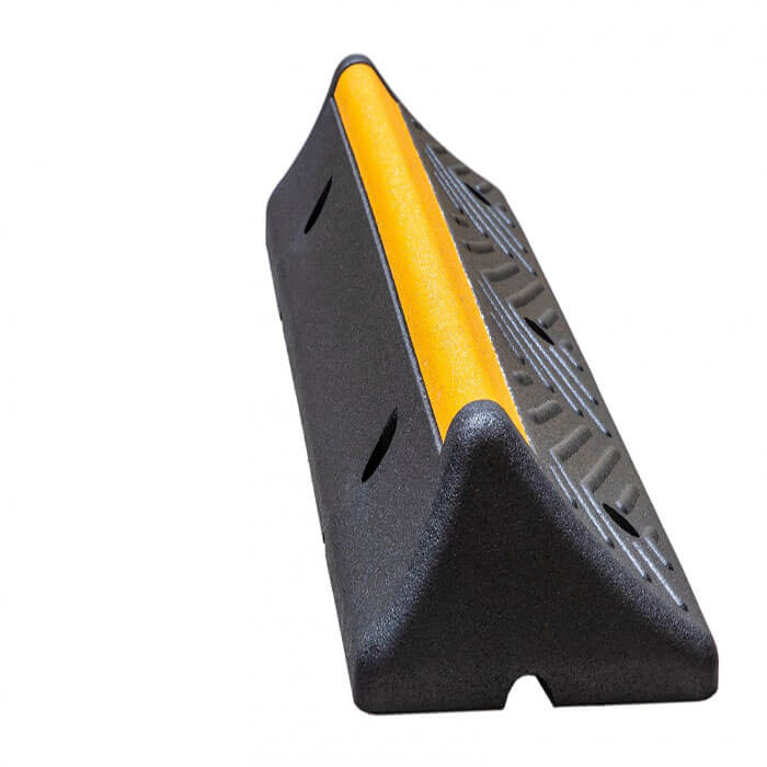 The heavy duty version of the wheel stop is a massive parking space restriction and manoeuvring aid for trucks, buses and other large vehicles designed for long-term use. The wheel stop prevents damage to vehicles, buildings and machinery by allowing the vehicle to roll only until the tyre is in contact with the sill.